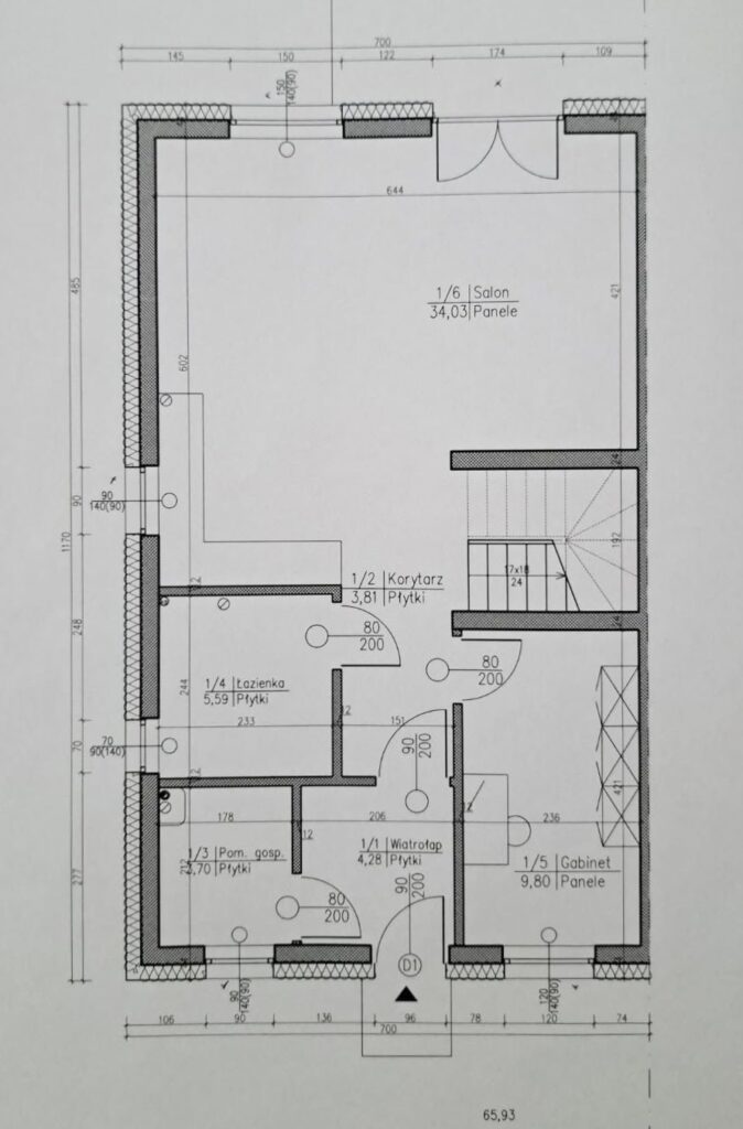 - PARTER – salon z aneksem kuchennym, łazienka, gabinet, wiatrołap